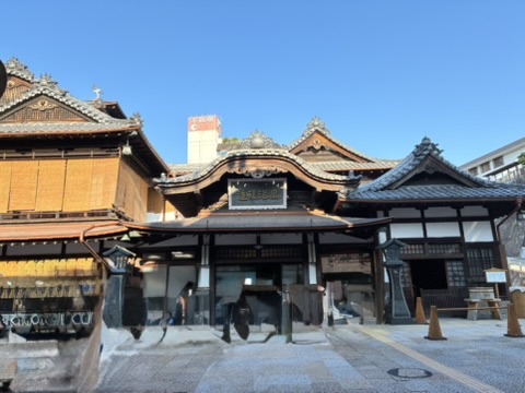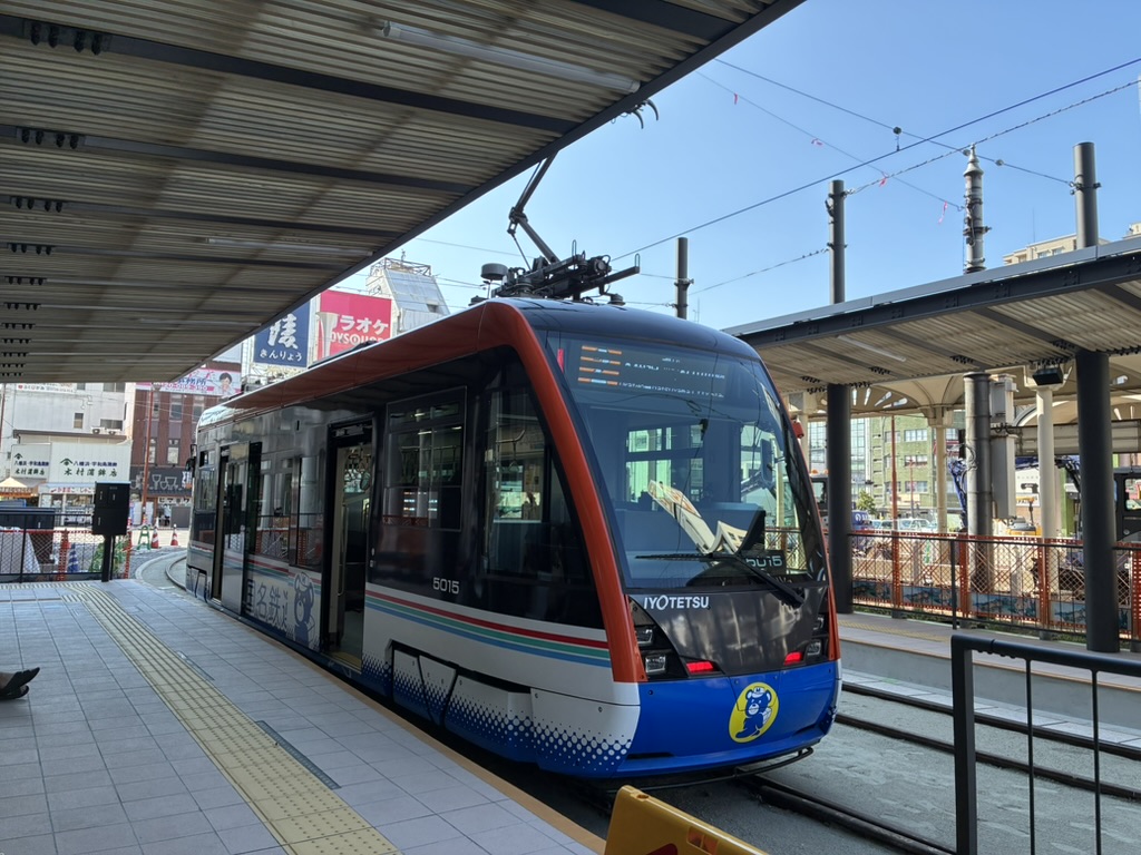 2025年8月リニューアルされた市電に乗って道後へ向かう