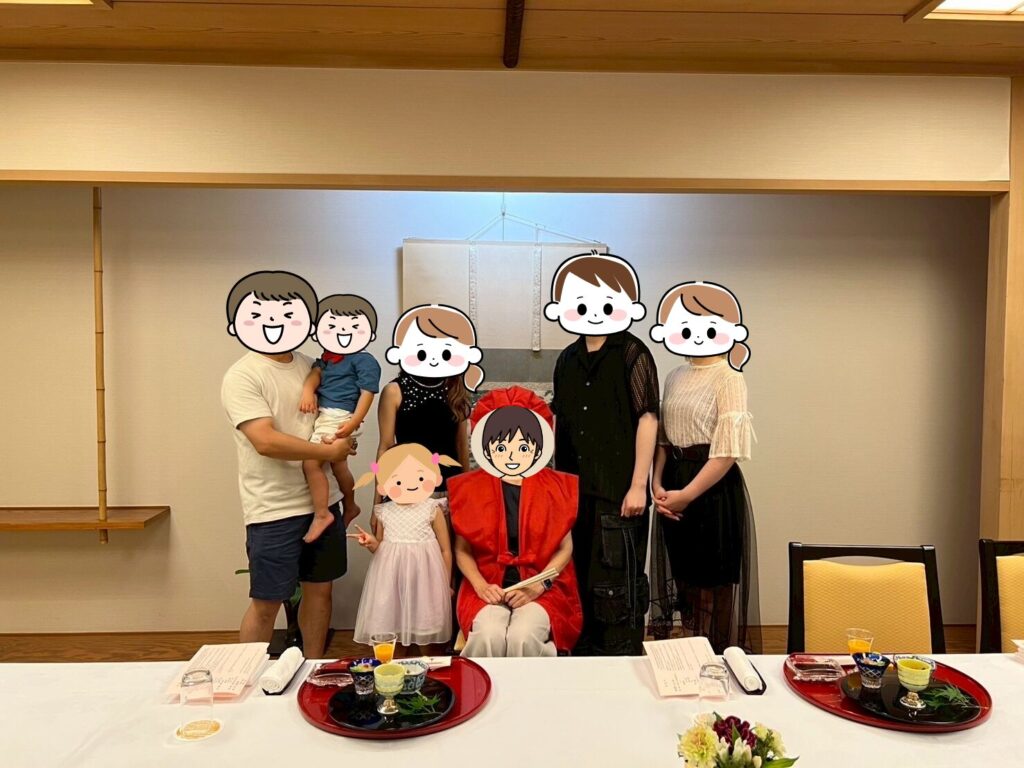 お決まりのちゃんちゃんこを着て子供と孫に囲まれての幸せ報告です!